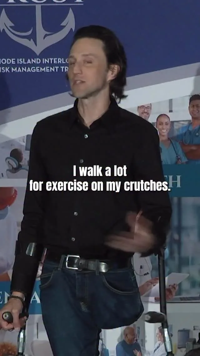 Josh is standing between the letters โaโ and โeโ in โspeakerโ using his body to make the shape of the letter โkโ